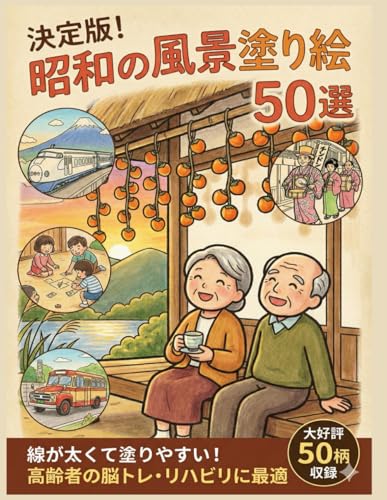 決定版!昭和の風景塗り絵50選は、まさに施設向きの一冊です。